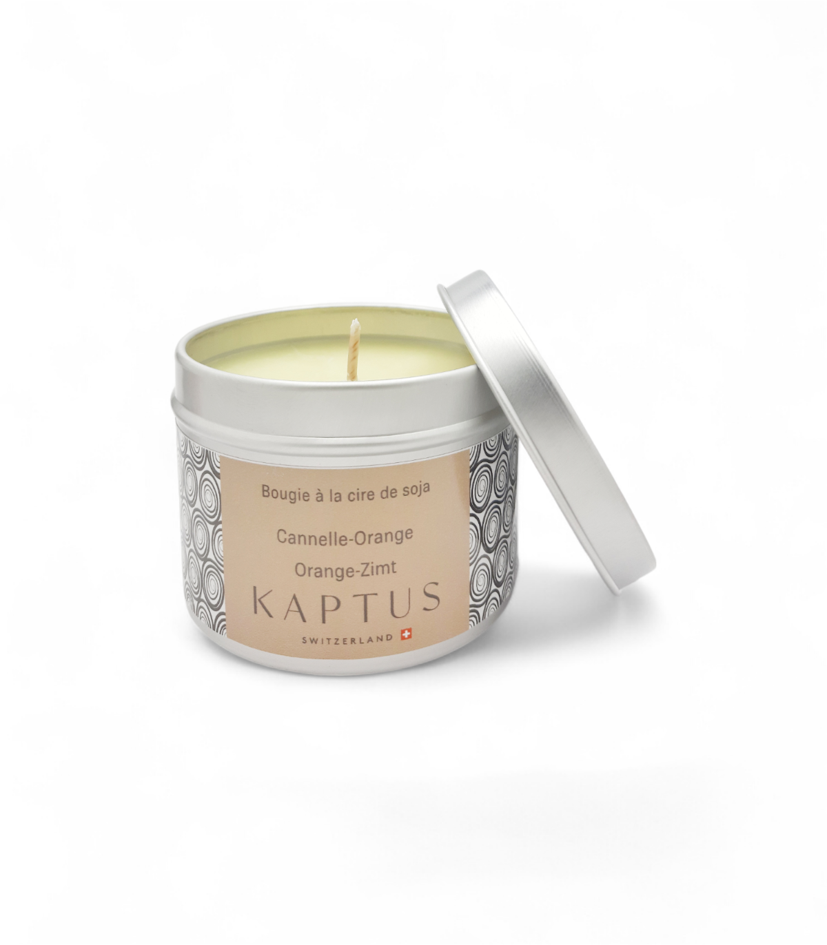 Candela in cera di soia Cannella-Arancia. Collezione viaggio. Il dolce profumo dell'arancia si mescola al morbido profumo della cannella, un balsamo incantevole.